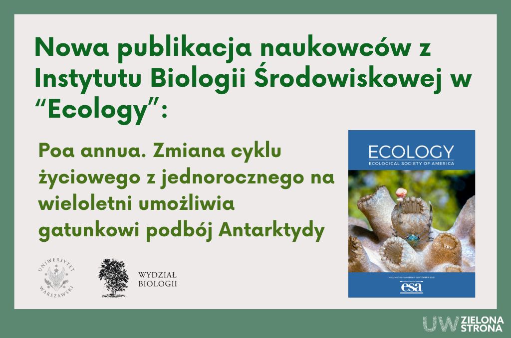 Agnieszka Rudak, Halina Galera i Maciej Wódkiewicz z Instytutu Biologii Środowiskowej opublikowali w „Ecology” artykuł pt. Is Poa annua a Skin-Changer? Annual–Perennial Life History Shift Enables the Species to Conquer Antarctica. Jest to kolejna publikacja tego zespołu, dotycząca inwazji wiechliny rocznej (Poa annua L.) w Antarktyce i badań populacyjnych tego gatunku.