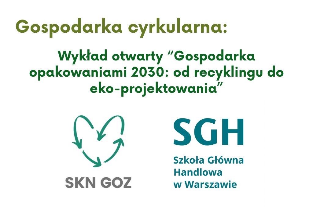 SKN Gospodarki o Obiegu Zamkniętym SGH wraz z Panem dr. hab. Zbigniewem Grzymałą prof. SGH serdecznie zapraszają na wykład otwarty pt. „Gospodarka opakowaniami 2030: od recyklingu do eko-projektowania – nowa odpowiedzialność producentów i samorządów” w wykonaniu Pana Konrada Nowakowskiego – Prezesa POLSKIEJ IZBY ODZYSKU I RECYKLINGU OPAKOWAŃ